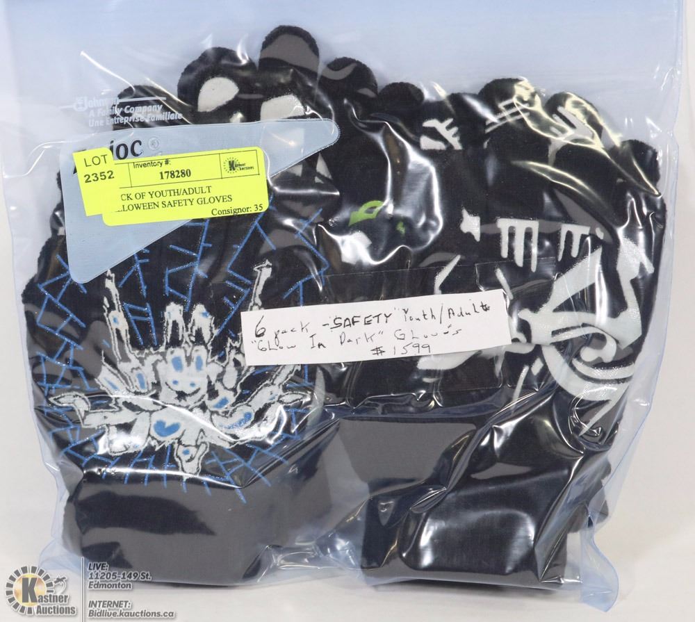 6 PACK OF YOUTH/ADULT HALLOWEEN SAFETY GLOVES