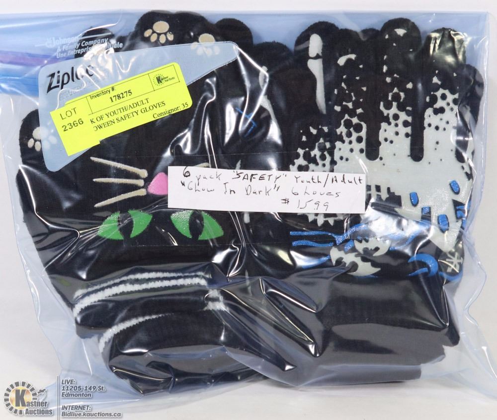 6 PACK OF YOUTH/ADULT HALLOWEEN SAFETY GLOVES