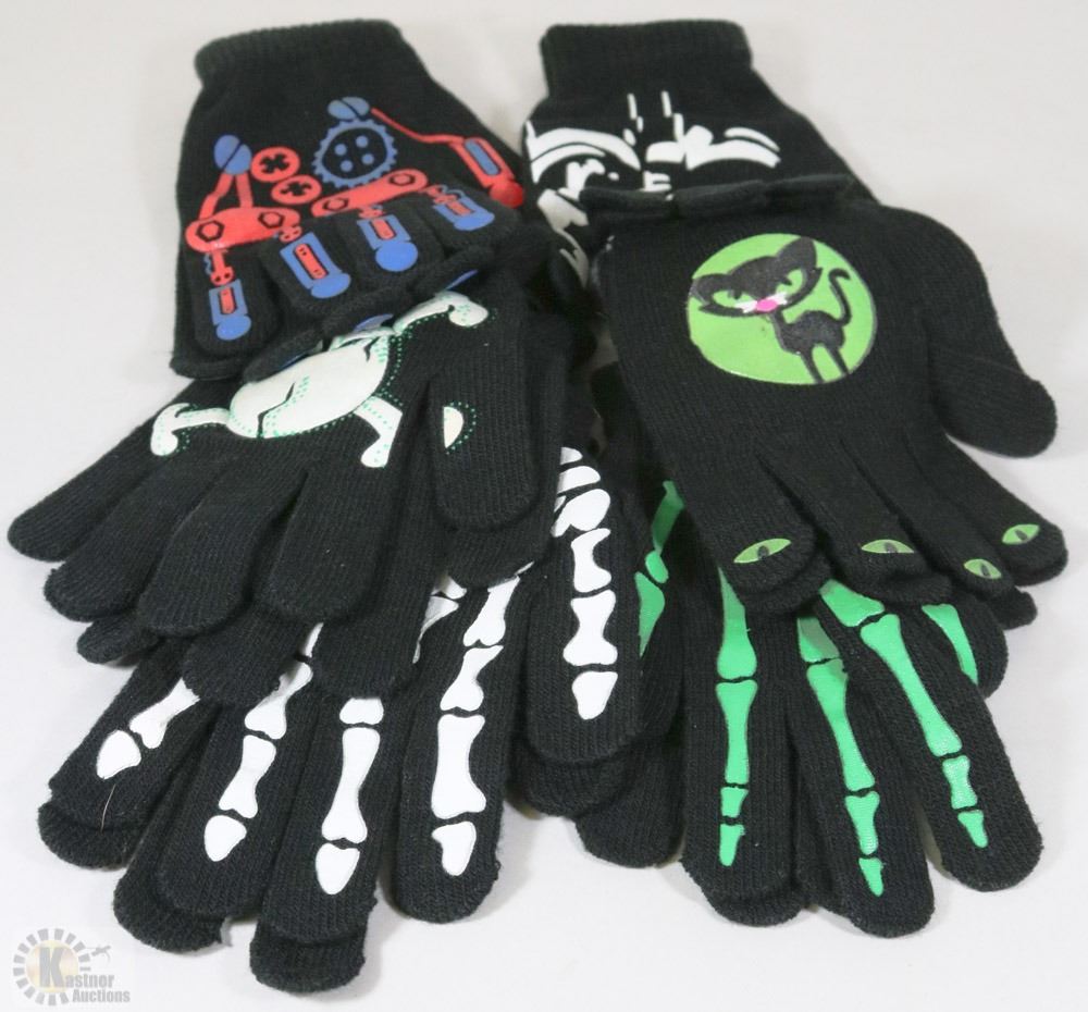 6 PACK YOUTH GLOW IN THE DARK HALLOWEEN GLOVES