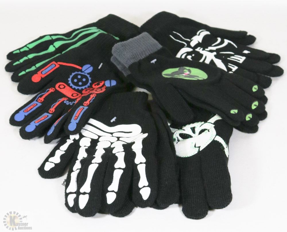 6 PACK YOUTH GLOW IN THE DARK HALLOWEEN GLOVES