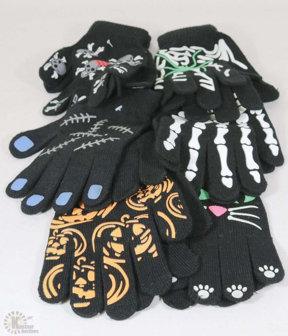6 PACK YOUTH GLOW IN THE DARK HALLOWEEN GLOVES