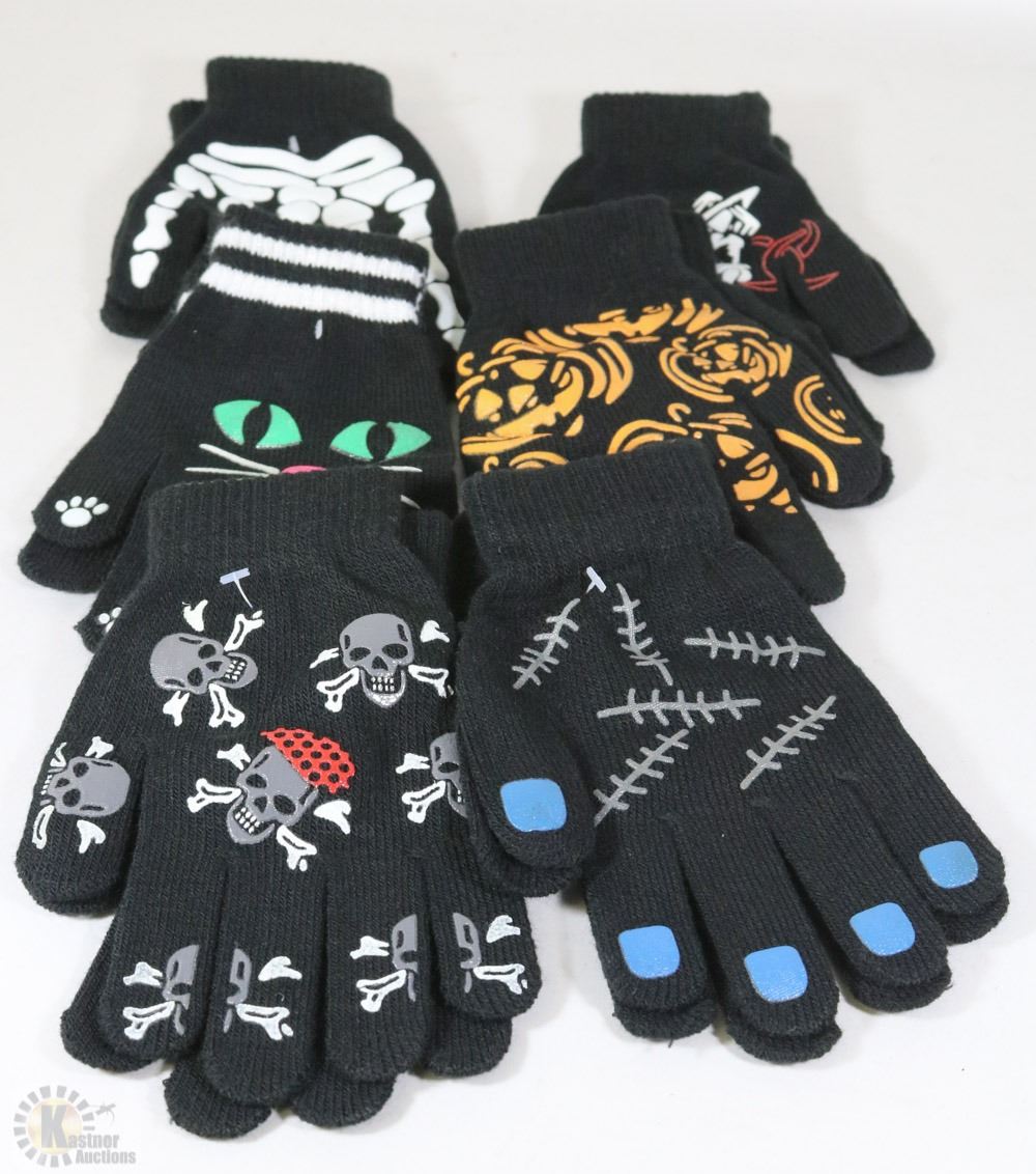 6 PACK YOUTH GLOW IN THE DARK HALLOWEEN GLOVES