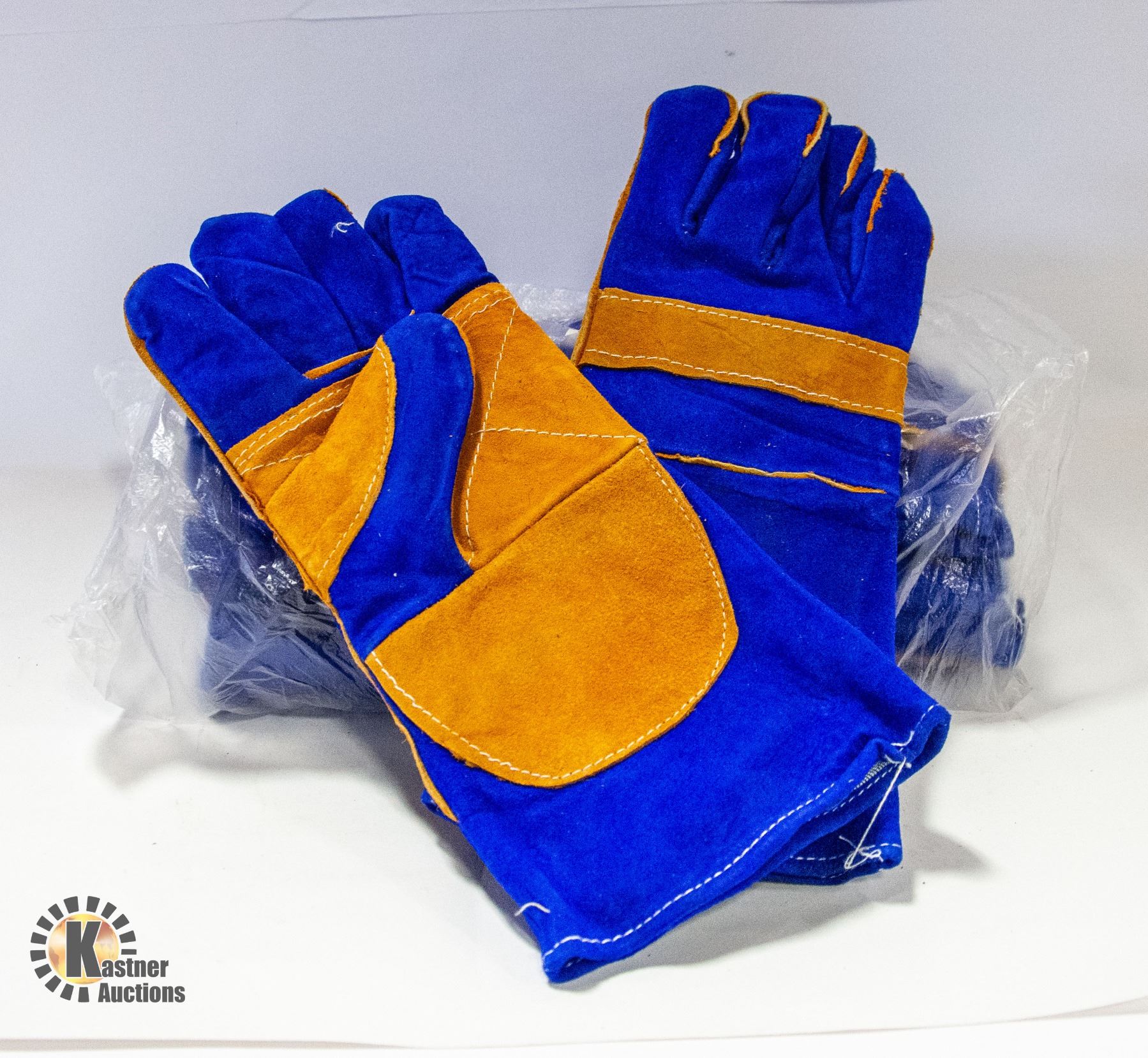 6 PAIRS NEW BLUE/TAN WELDING GLOVES MED/LARGE
