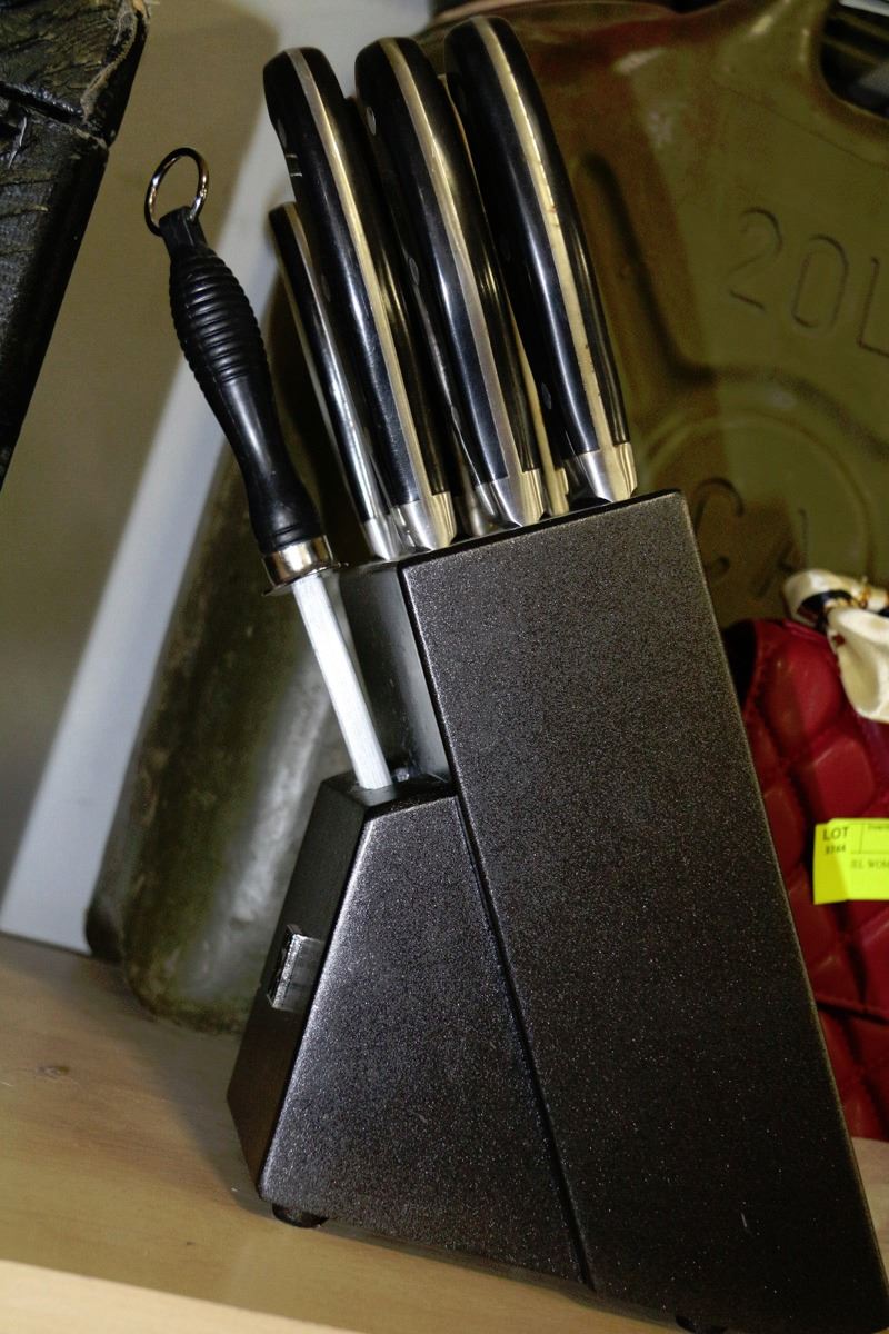 6 PC KITCHEN KNIFES/BLOCK/KNIFE SHARPENER