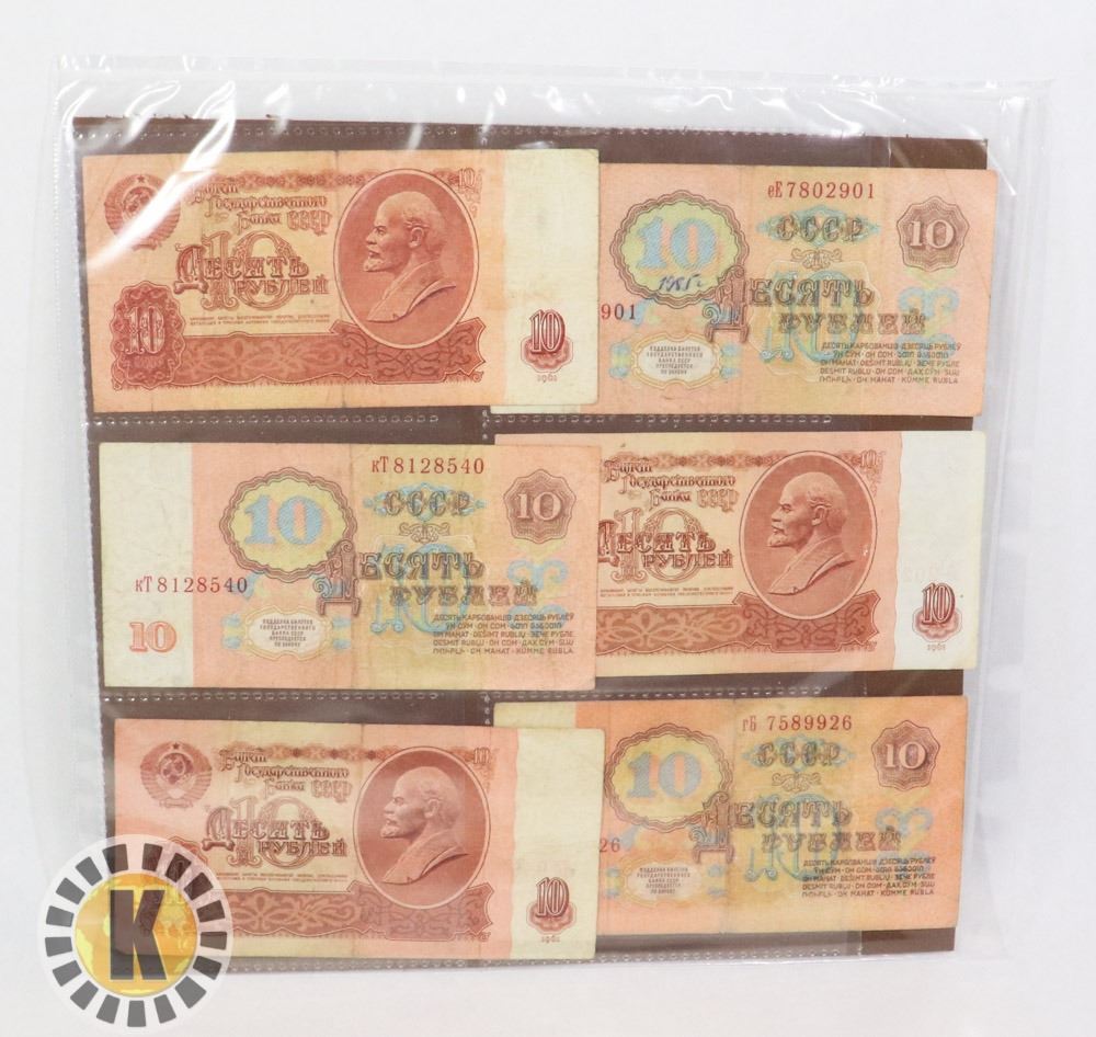 6 PCS VINTAGE RUSSIAN 10 ROUBLE NOTES W LENIN PIC