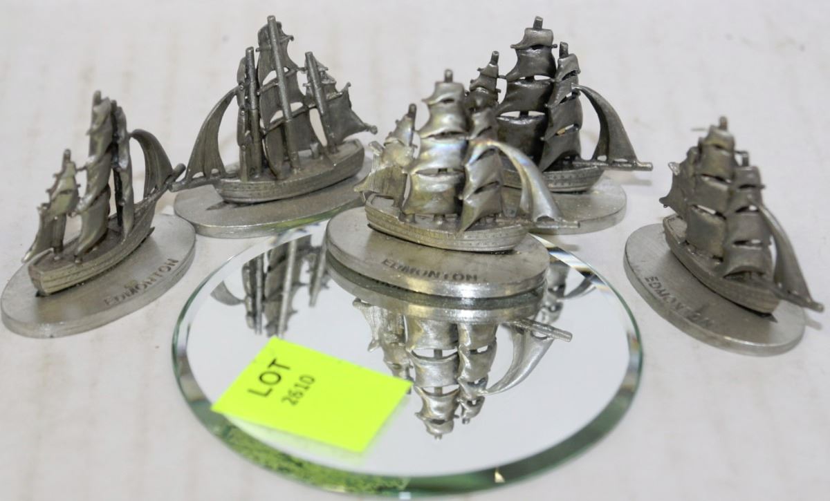 6 PEWTER SHIP FIGURINES