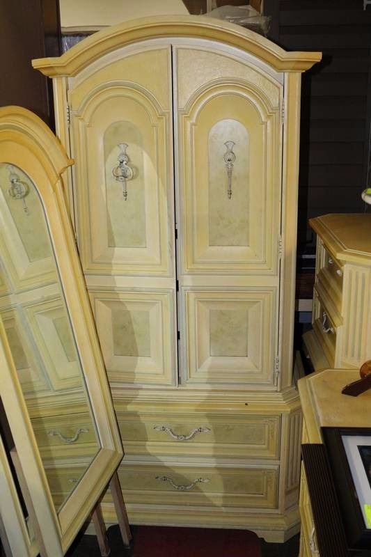 2 DOOR 5 DRAWER ARMOIRE, 2 NIGHT TABLES, 9 DRAWER DRESSER, & 2 MATCHING MIRRORS