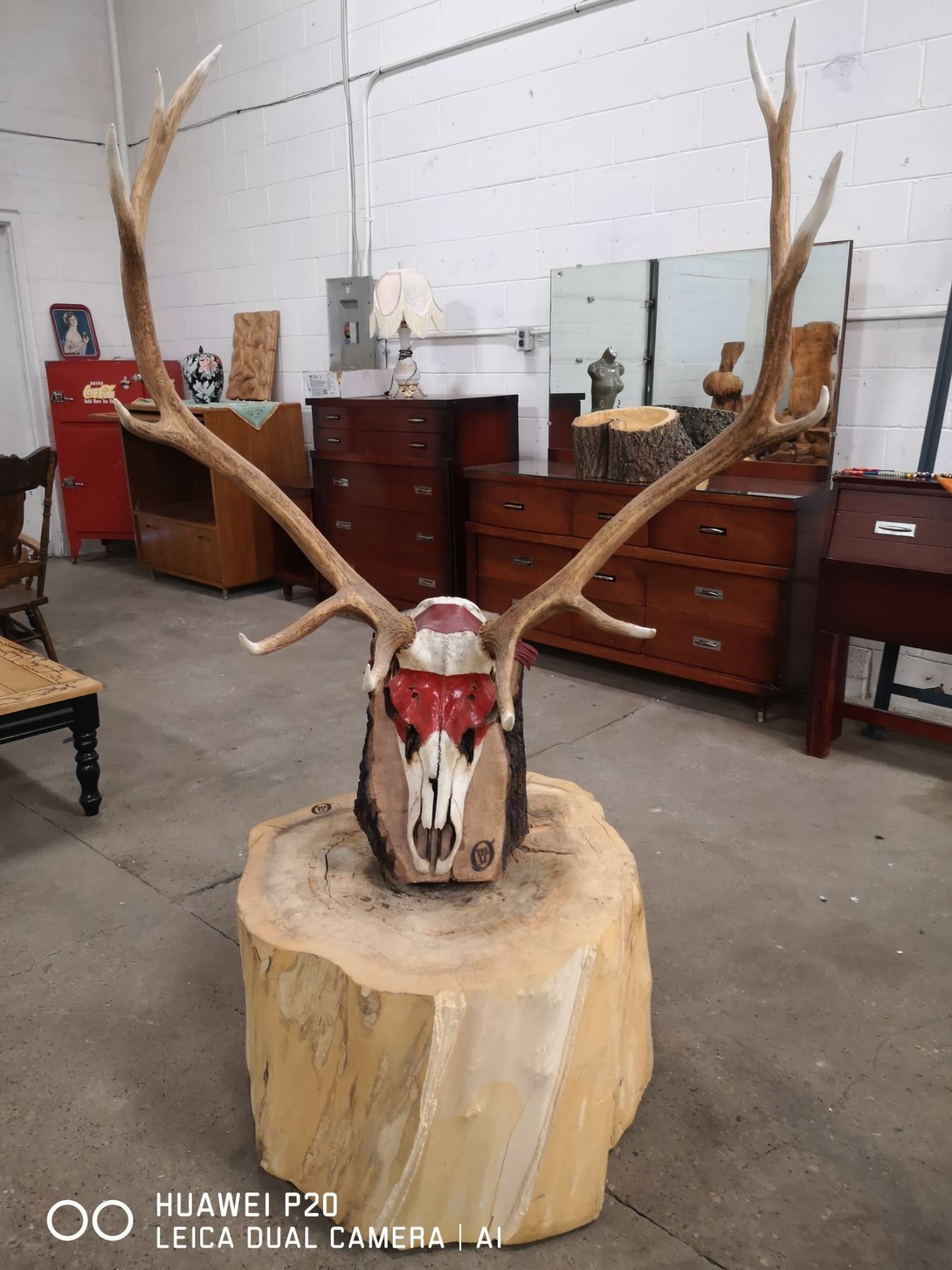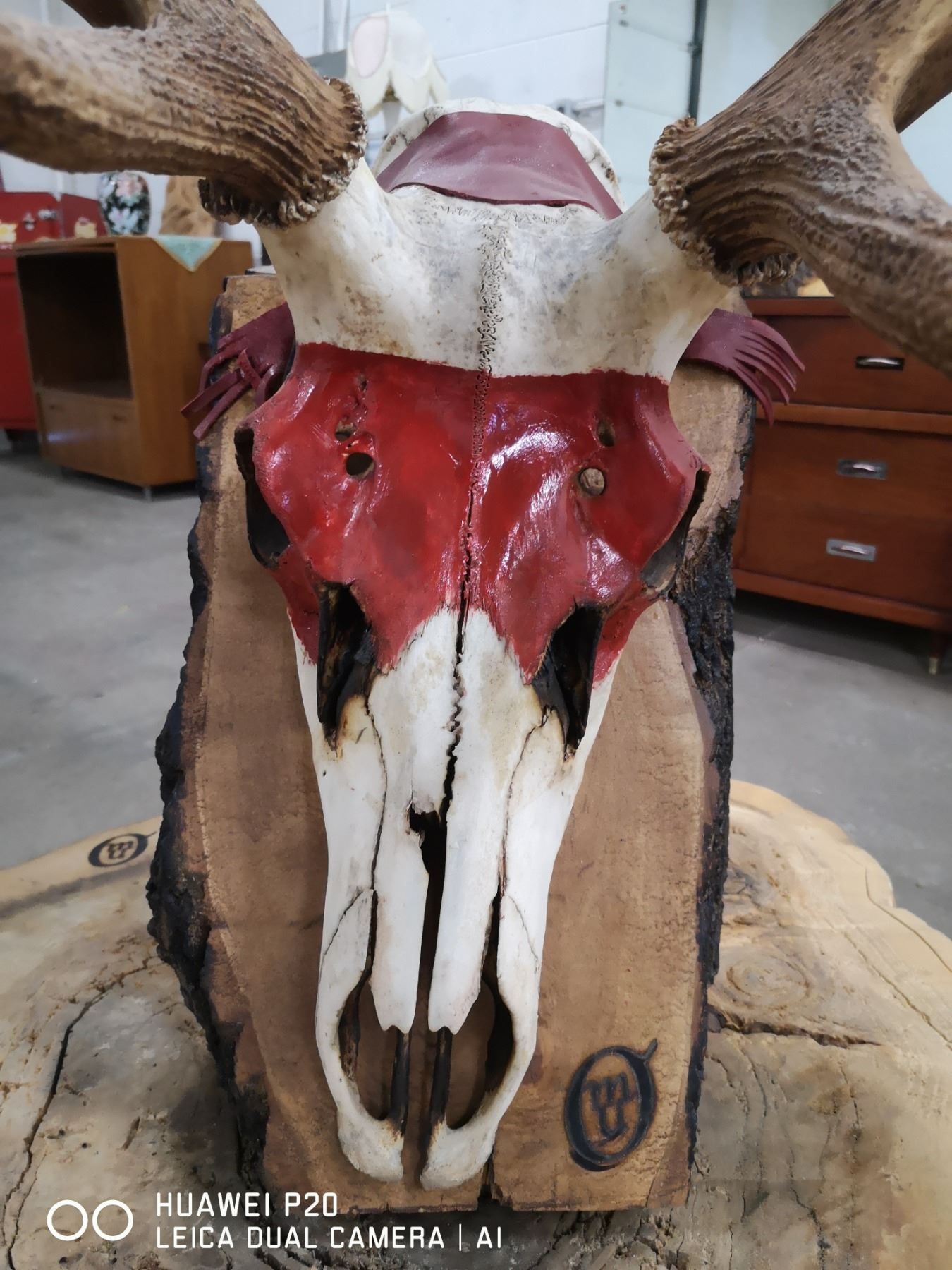6 POINT ELK WHOLE SKULL MOUNTED NATIVE ART