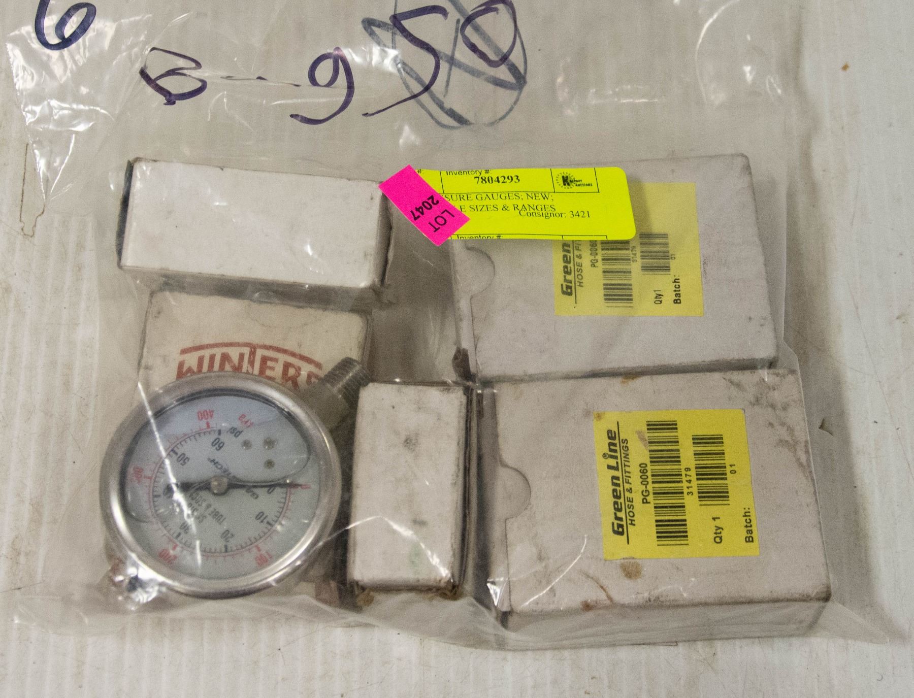 (1) 1 1/2", 0-60 PSI, 1/8" NPT; (3) 2 1/2", 0-60 PSI, 1/4" NPT; (1) 2 1/2", 0-200 PSI, 1/4" NPT; (1) 2 1/2", 0-60 PSI, MPT LM **ALL ITEMS MUST BE REMOVED BY 5PM SATURDAY, JUNE 17TH 2023. ALL REMAINING ITEMS WILL BE SUBJECT TO A $6.00 PER DAY STORAGE CHARGE. ANY ITEMS REMAINING AFTER MONDAY, JULY 3RD, 2023 WILL BE CONSIDERED FORFEITED. NO REFUNDS WILL BE ISSUED FOR FORFEITED ITEMS. TO SCHEDULE A PICK UP APPOINTMENT CLICK HERE