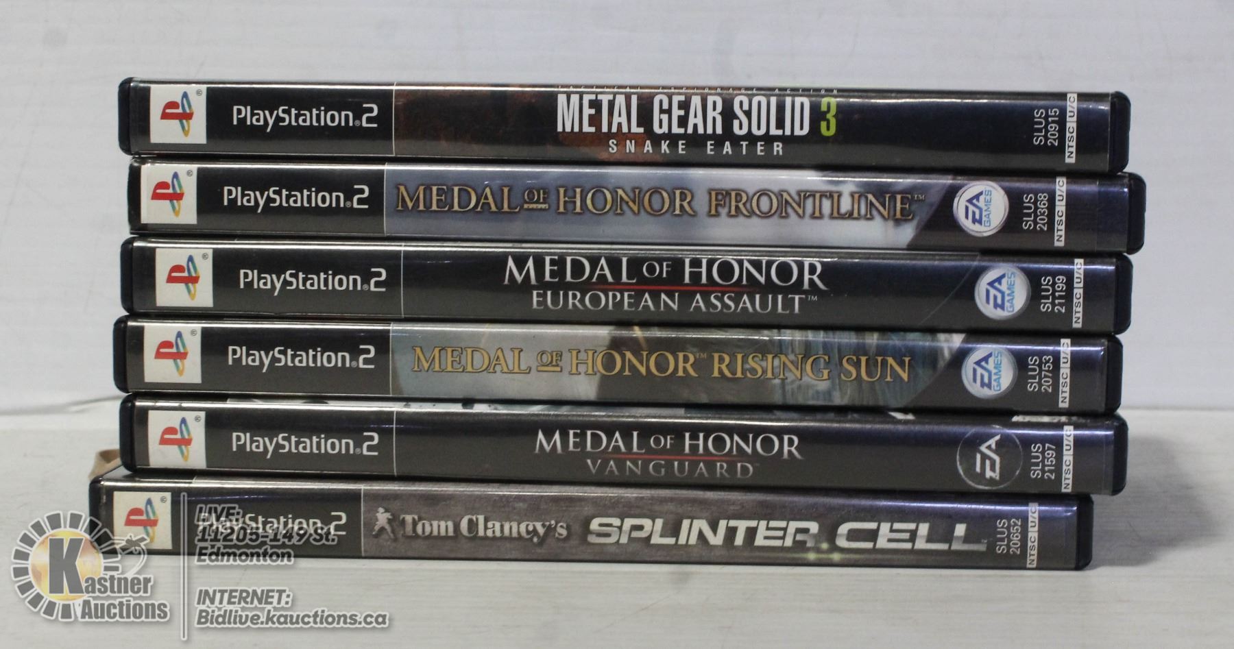 6 PS2 GAMES MEDAL HONOR X 4, METAL GEAR & SPLINTER