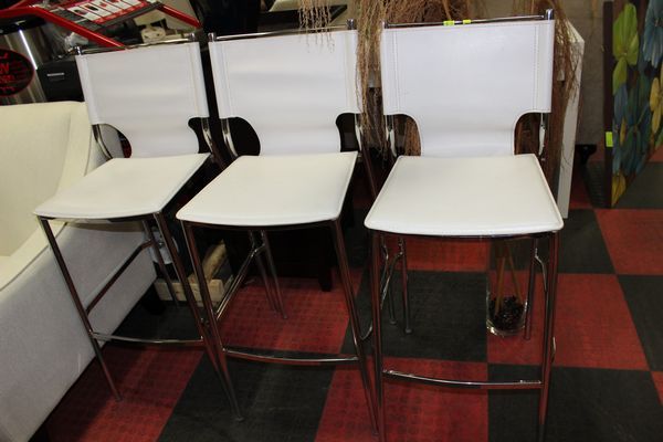 #6 SET OF 3 WHITE AND CHROME BAR STOOLS
