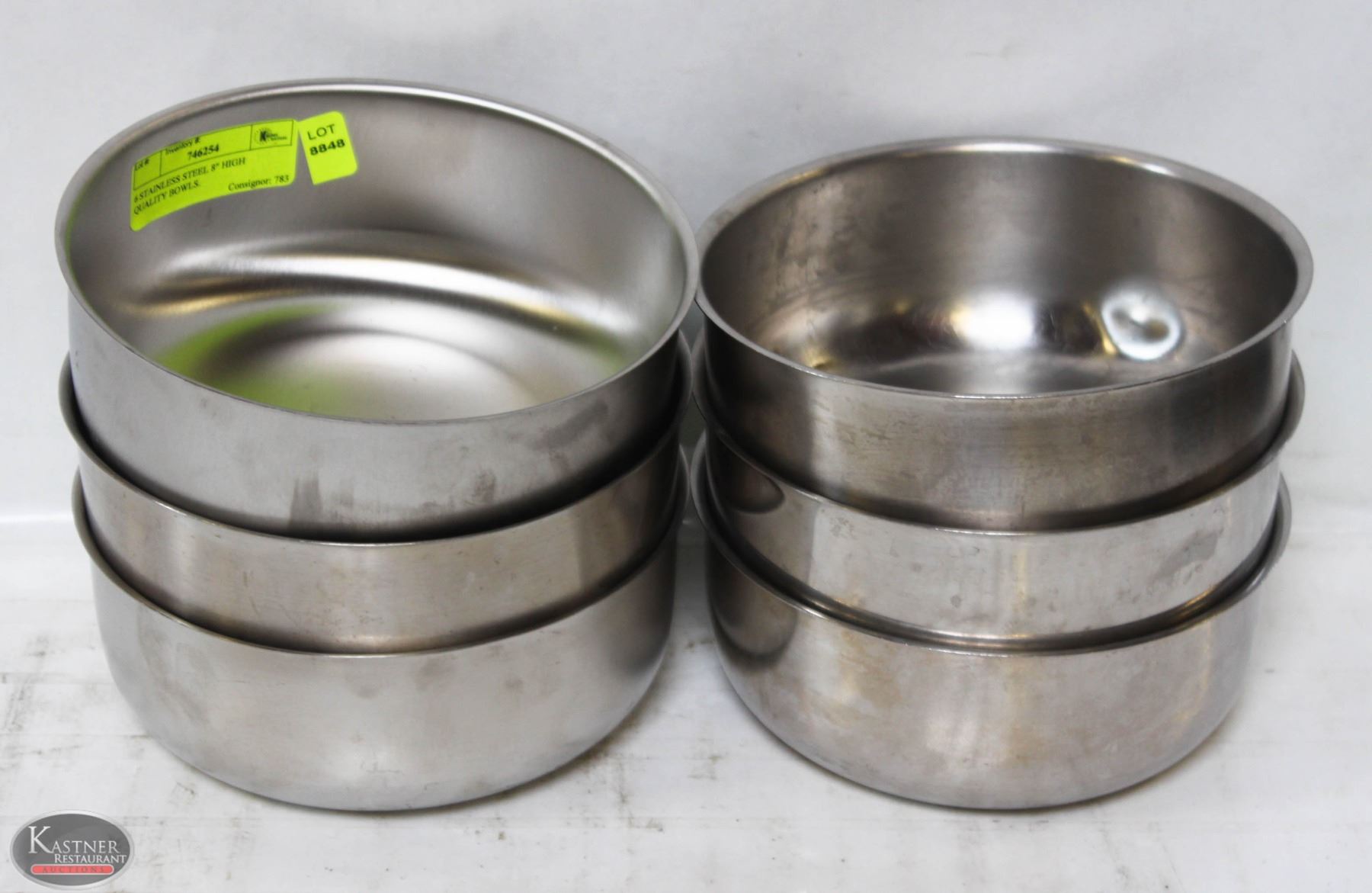 6 STAINLESS STEEL 8" HIGH QUALITY BOWLS.
