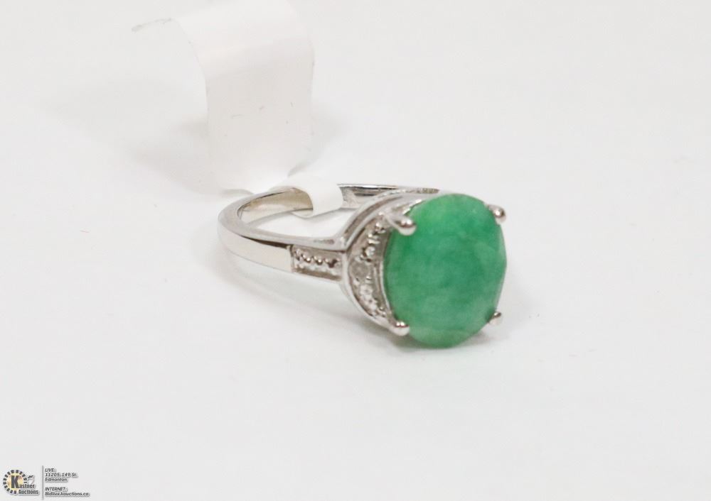 MS18 - 6- STERLING SILVER EMERALD RING SIZE 6.25. JEWELRY