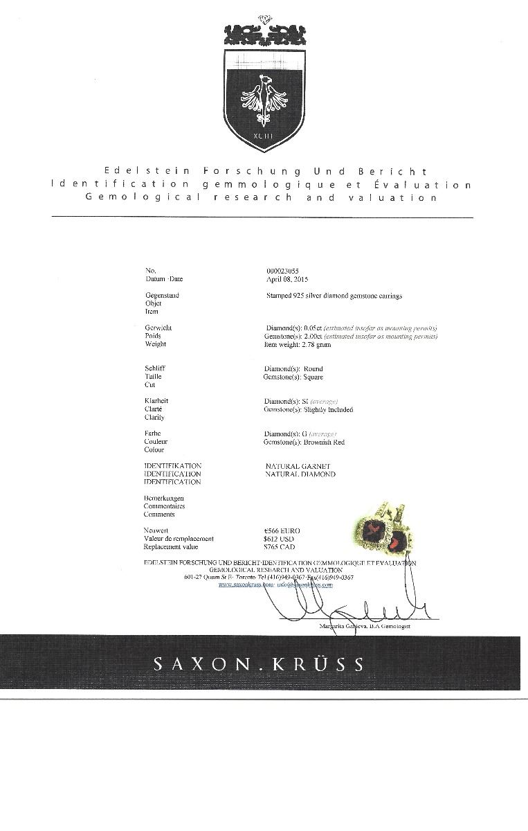 STERLING SILVER GARNET & DIAMOND EARRINGS. W/ COA- SUGGESTED REPLACEMENT VALUE $765.00
