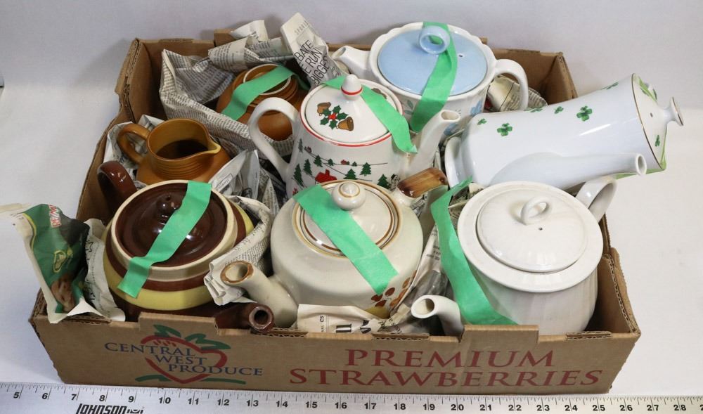 6 TEAPOTS - CREAM & SUGAR BOWLS MARKED ENGLAND 522
