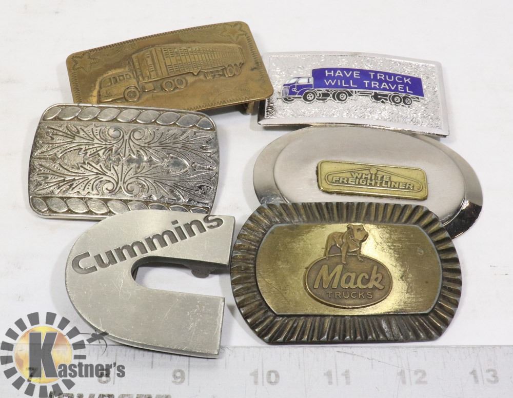 6 TRUCKER BELT BUCKLES INCLUDING MACK, CUMMINS &
