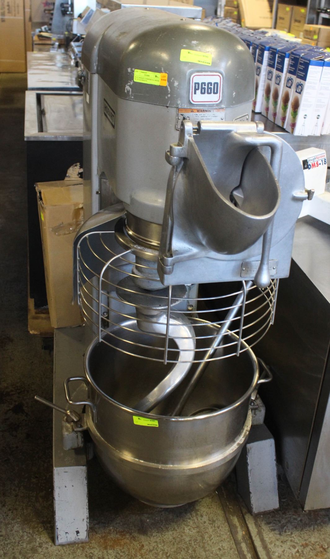 INCLUDING: BOWL, MIXING HOOK, SHREDDER/CHOPPER ATTACHMENT, S/S MIXING PADDLE. M#: P-660SBA, 3-PHASE, 208-240 V , 8.6 A, 2.5 HP. 36" X 24" X 56"