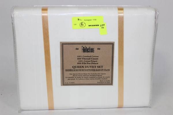 600 THREAD COUNT QUEEN DUVET SET WHITE STRIPES