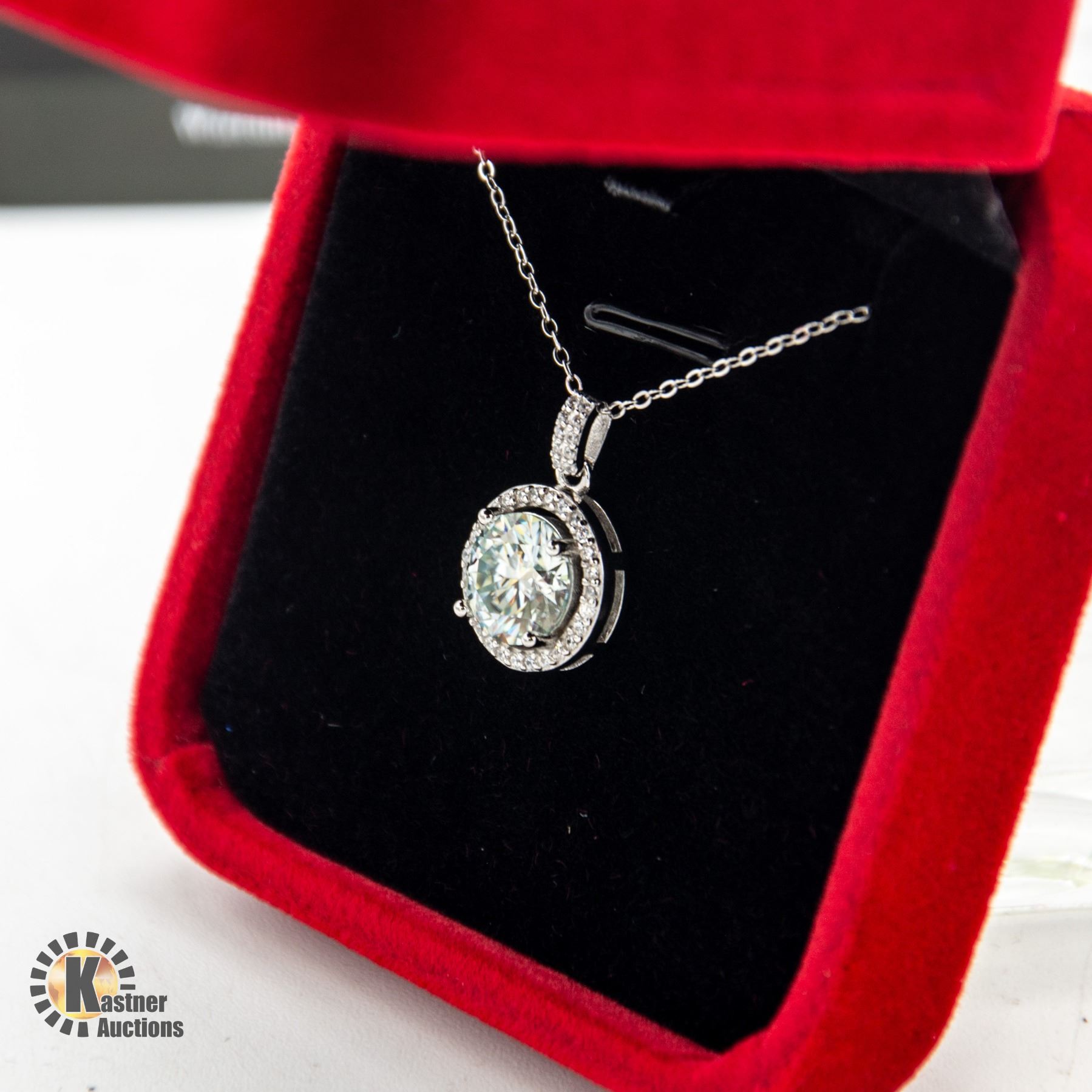 SURROUNDED BY HALO OF 30 MOISSANITE INCLUDING SOME SET IN BAIL SET IN 925 SILVER PENDANT AND NECKLACE APPRAISED VALUE $2,295.00
