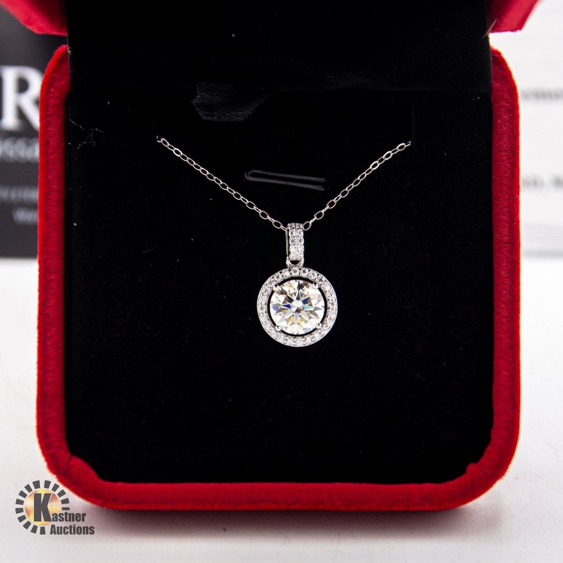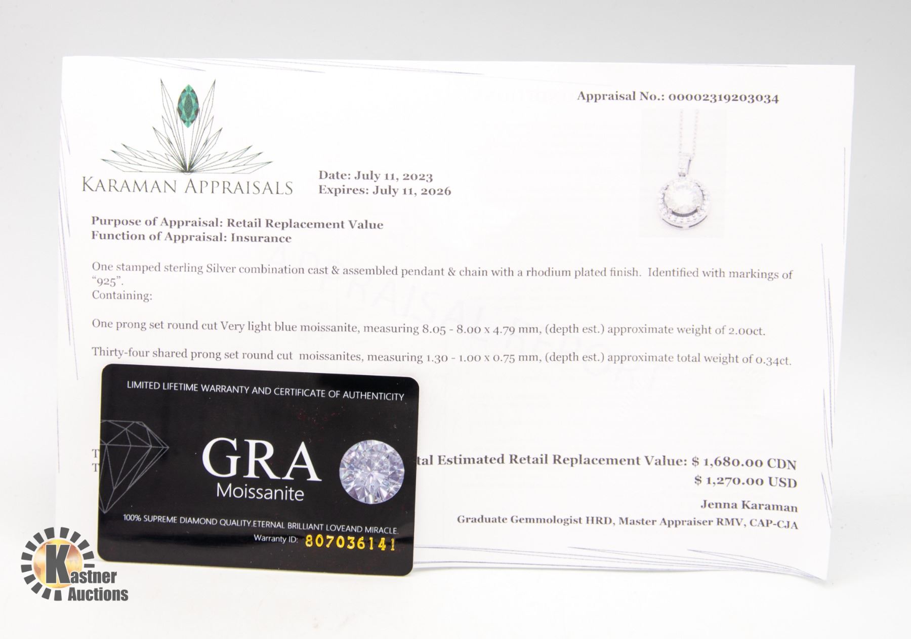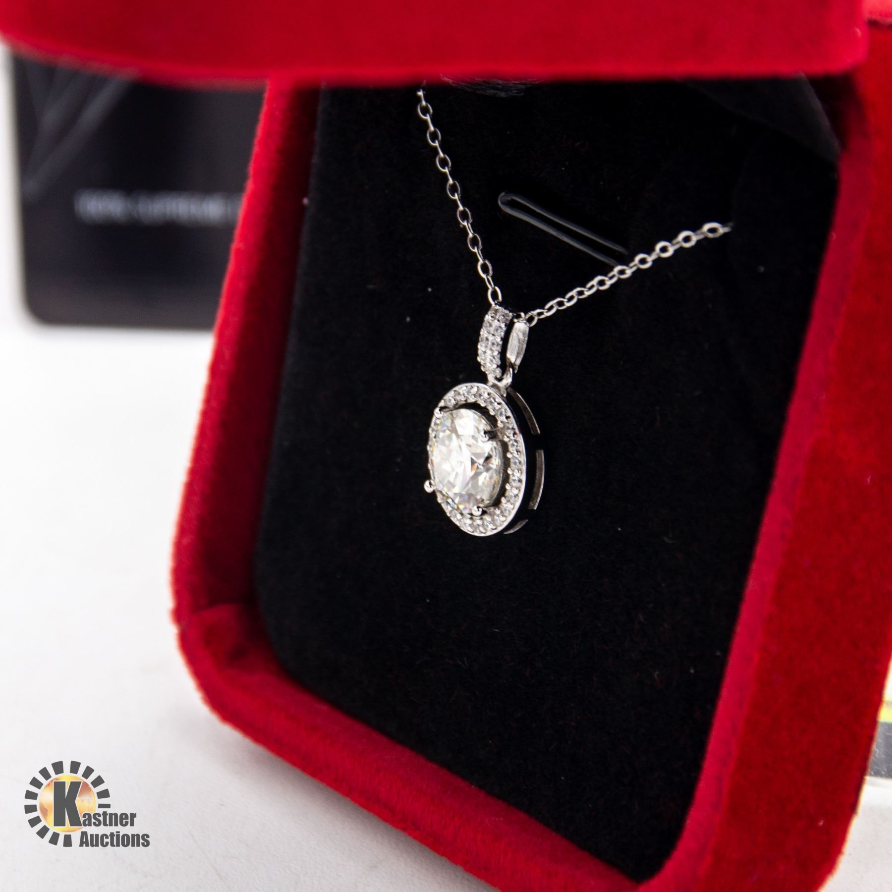 SURROUNDED BY HALO OF 34 MOISSANITE INCLUDING SOME SET IN BAIL SET IN S925 PENDANT AND NECKLACE APPRAISED VALUE $1,680.00