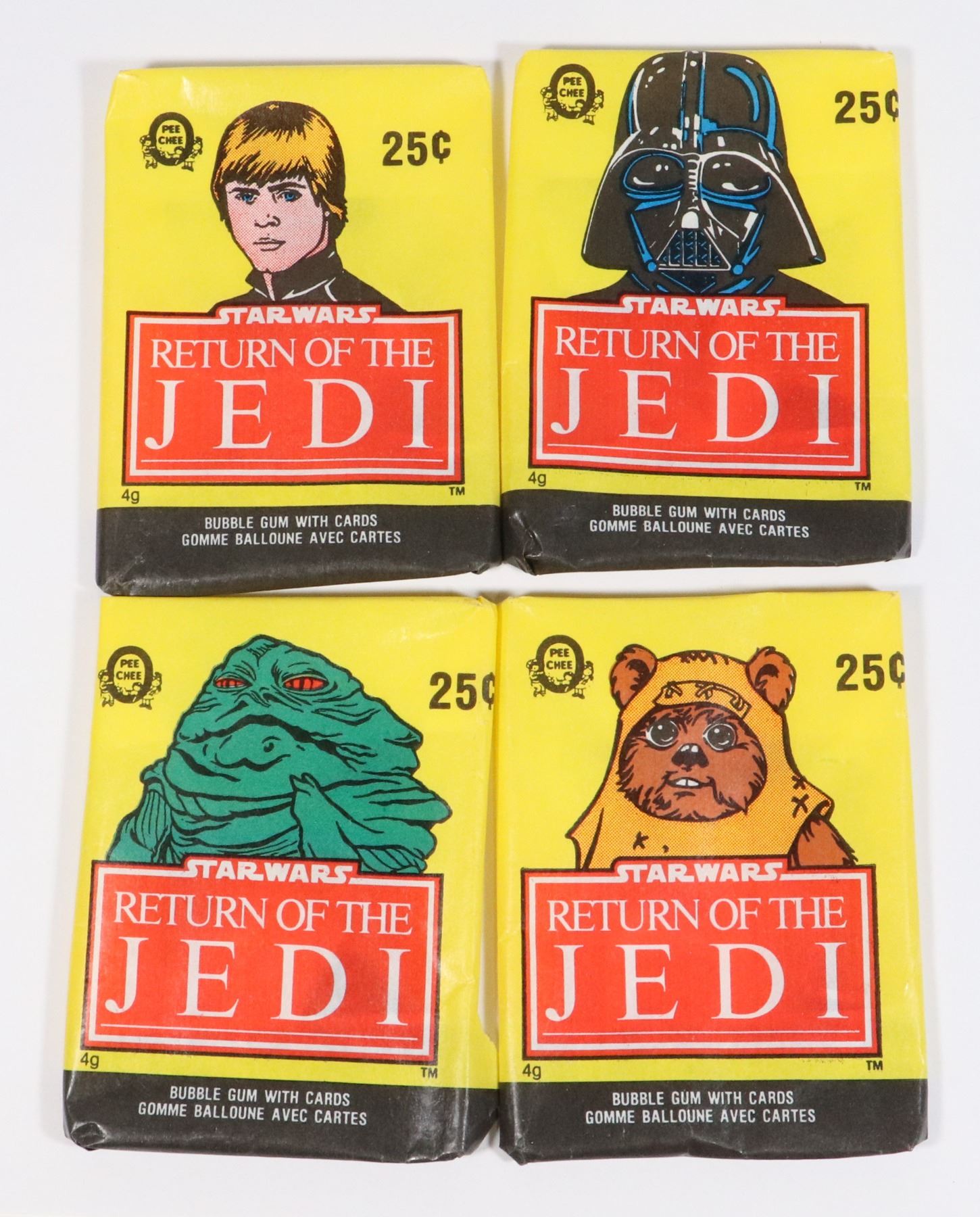 LOT OF 4 VARIANTS OF O-PEE-CHEE VARIANT 1983 RETURN OF THE JEDI CARD SET EWOK JABBA THE HUT DARTH VADER LUKE SKYWALKER