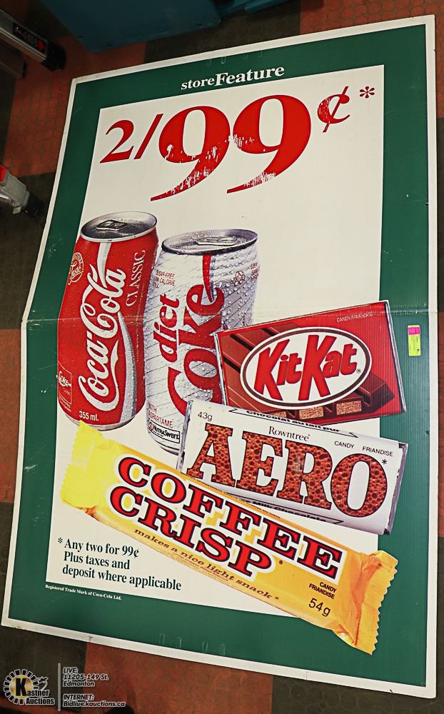 64" X 44" RARE 2 SIDED AD SIGN PEPSI / COCA COLA