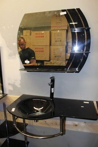 #6422 BLACK AND CHROME BATHROOM FLOATING VANITY