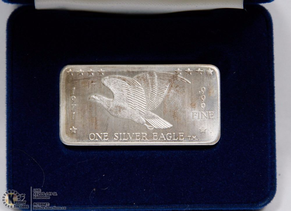 66) 1971 ONE SILVER EAGLE .999 FINE SILVER BAR.