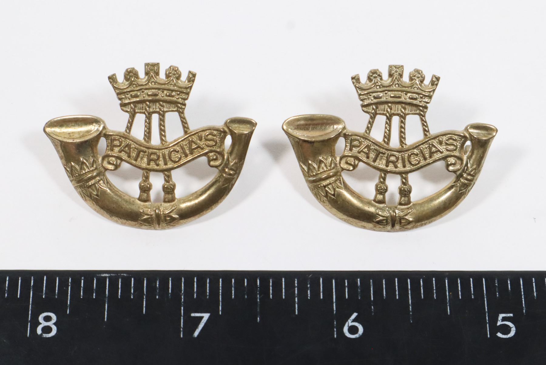 PPCLI COLLAR BADGE SET MAKER MARKED ON REVERSE CANADIAN CANADA MILITARY ARMY COLD WAR ERA QUEEN ELIZABETH II QEII CAP BADGE