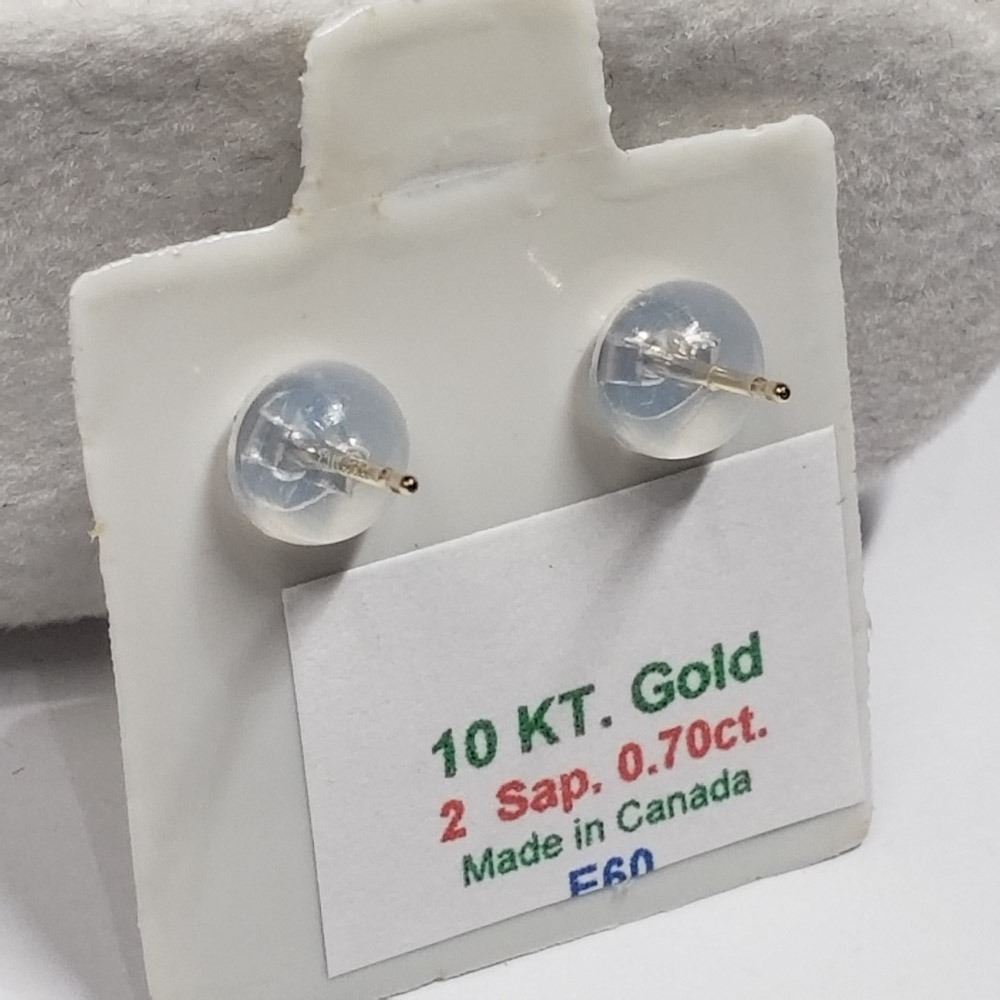 167 - JT36 - 10K YELLOW GOLD 2 SAPPHIRE (0.7CTS) EARRINGS, MADE IN CANADA. JEWELRY