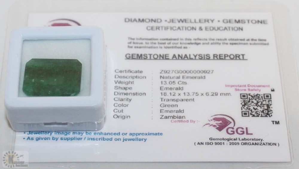 67) NATURAL EMERALD 13.05CT WITH COA