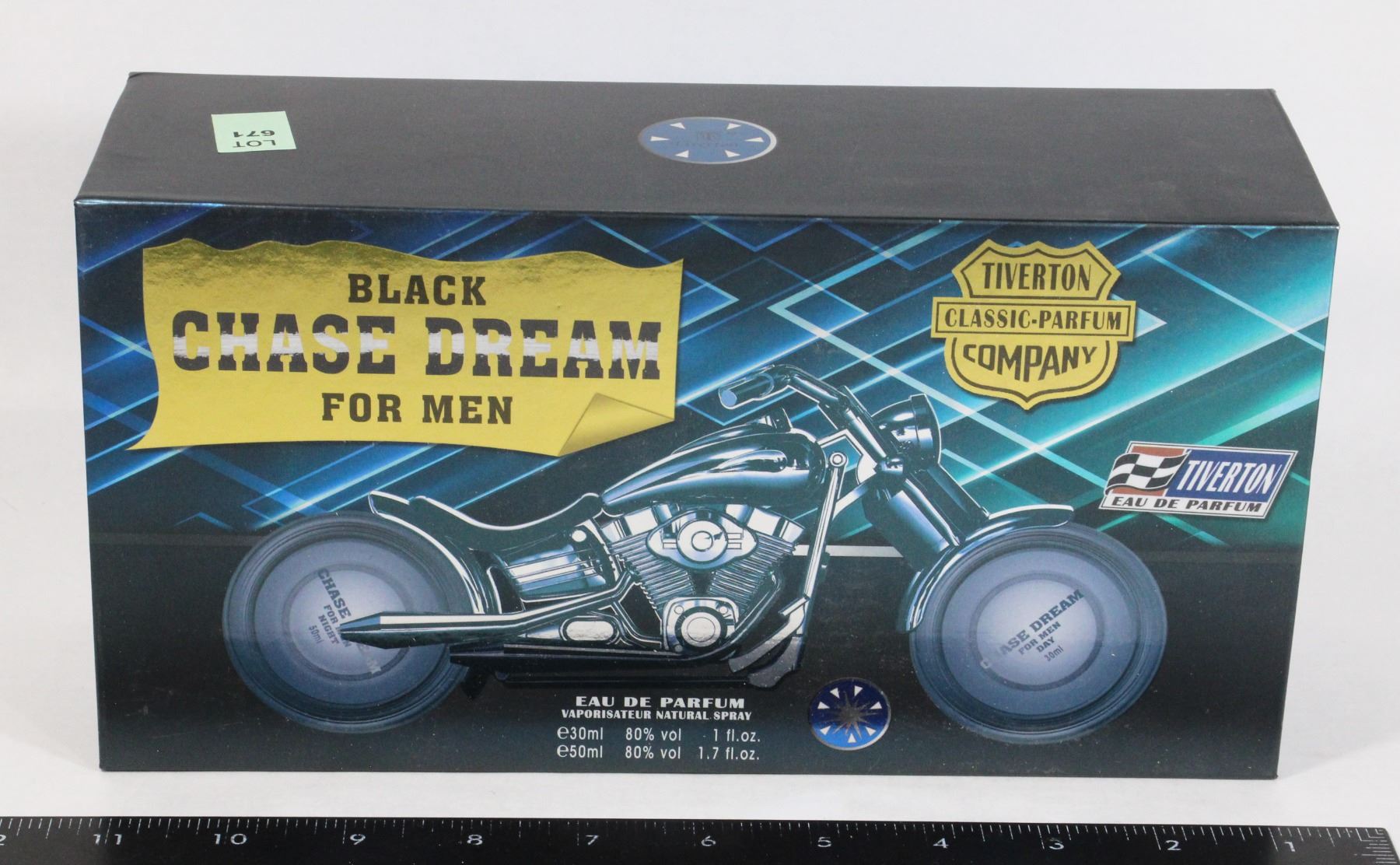 Black Chase Dream for Men Eau De Parfum Tiverton Classic-Parfum Company Boxed Perfume Bottle in Motorcycle Design -From Large Scale Model Railroad Collection including New Old Stock Trains, Sealed Sets and Accessories