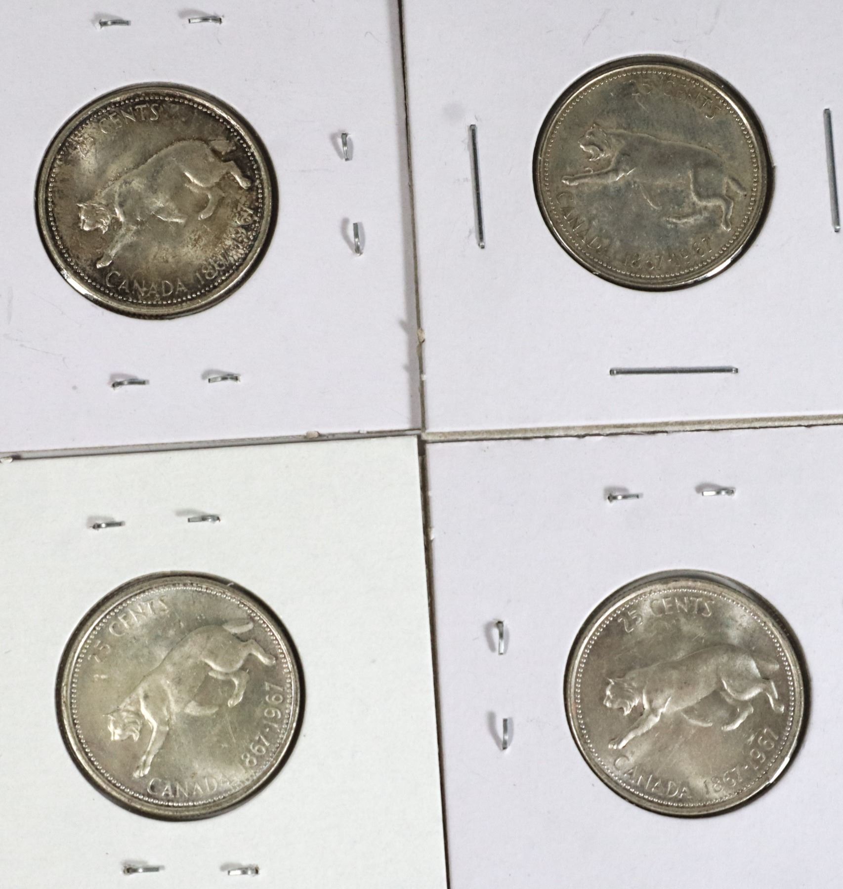 QUEEN ELIZABETH II QEII CANADA CANADIAN SILVER CURRENCY LOT OF 4 1967 CENTENNIAL BOBCAT DESIGN