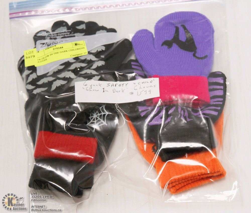 6PK GLOW IN THE DARK CHILDRENS GLOVES