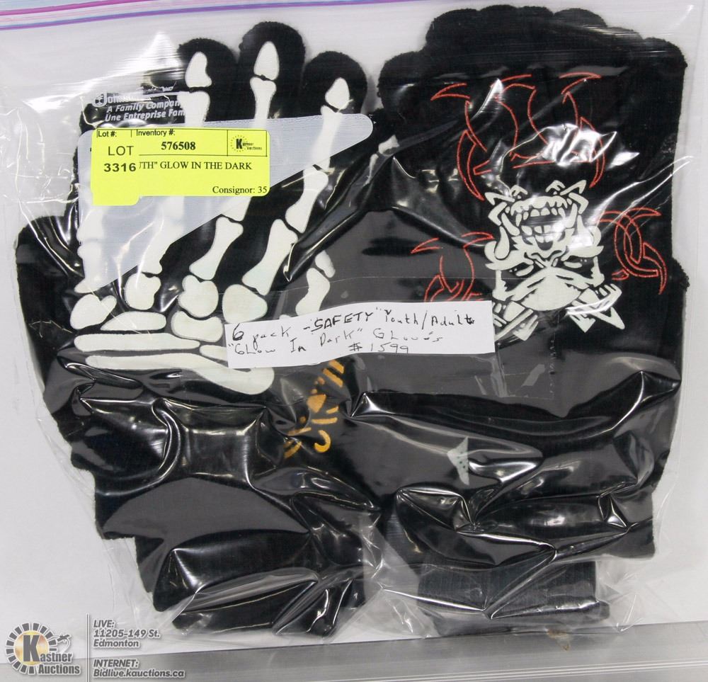 6PK "YOUTH" GLOW IN THE DARK GLOVES