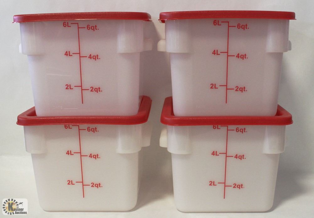 6QT WHITE INGREDIENT BINS & LIDS - LOT OF 4