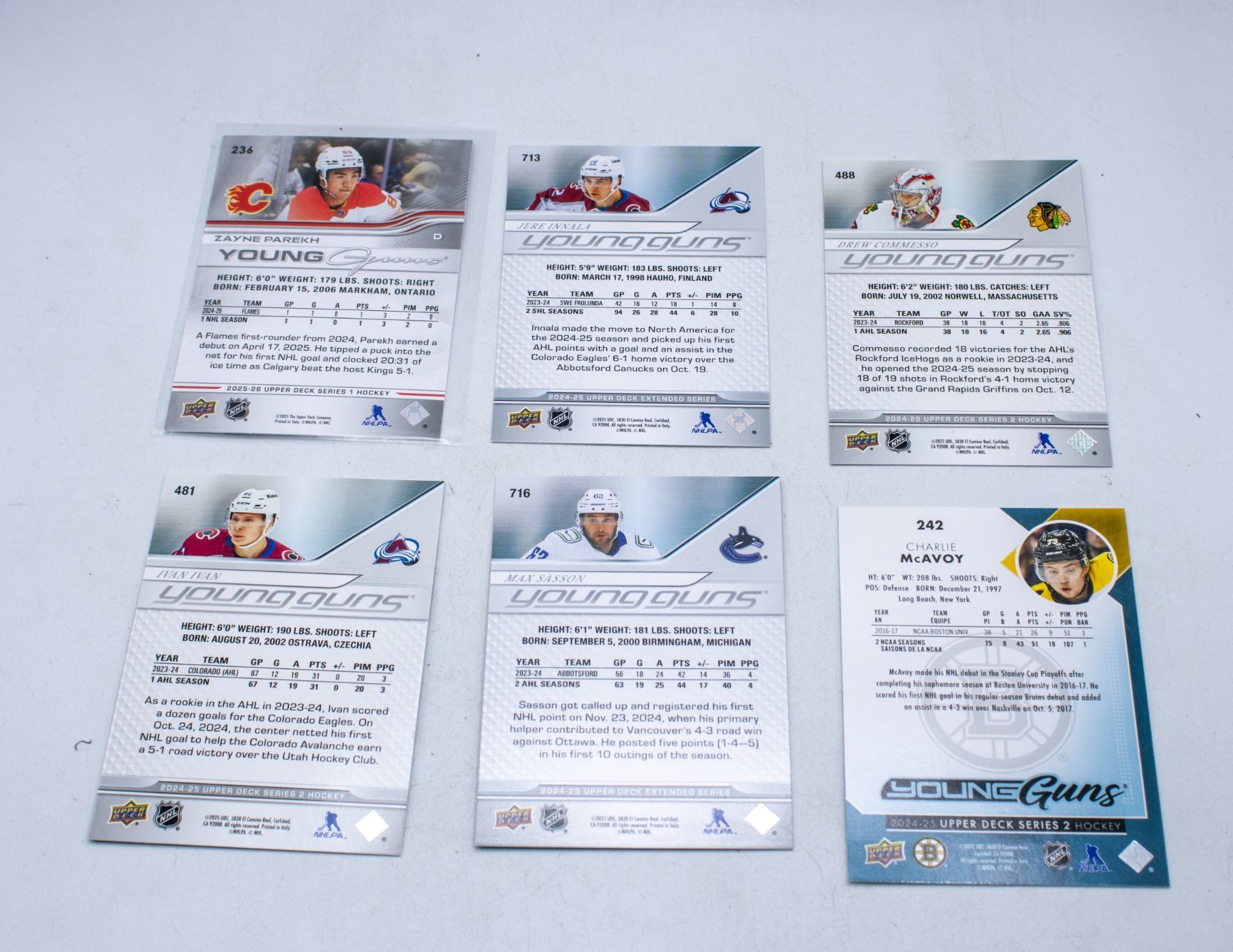 6X 2024/2025 UPPER DECK YOUNG GUNS CARDS