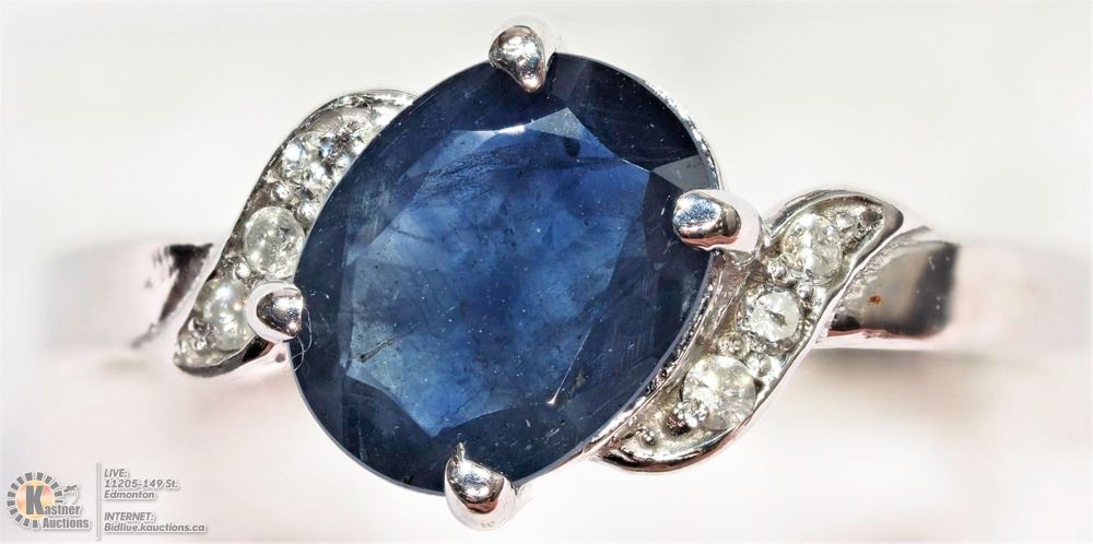 SIZE 6.5 WITH COA-7 - AC8 - 10K WHITE GOLD SAPPHIRE (1.8CT) AND DIAMOND ELEGANT RING. SUGGESTED REPLACEMENT VALUE $2000.00
