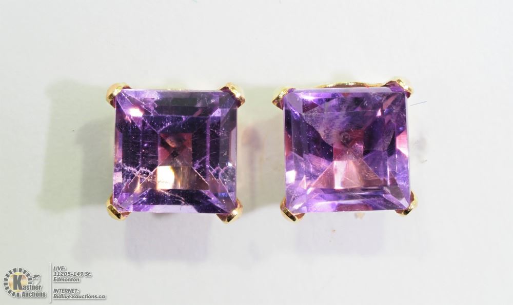 LS14 - 7- 10KT GOLD AMETHYST (5X5MM) EARRINGS