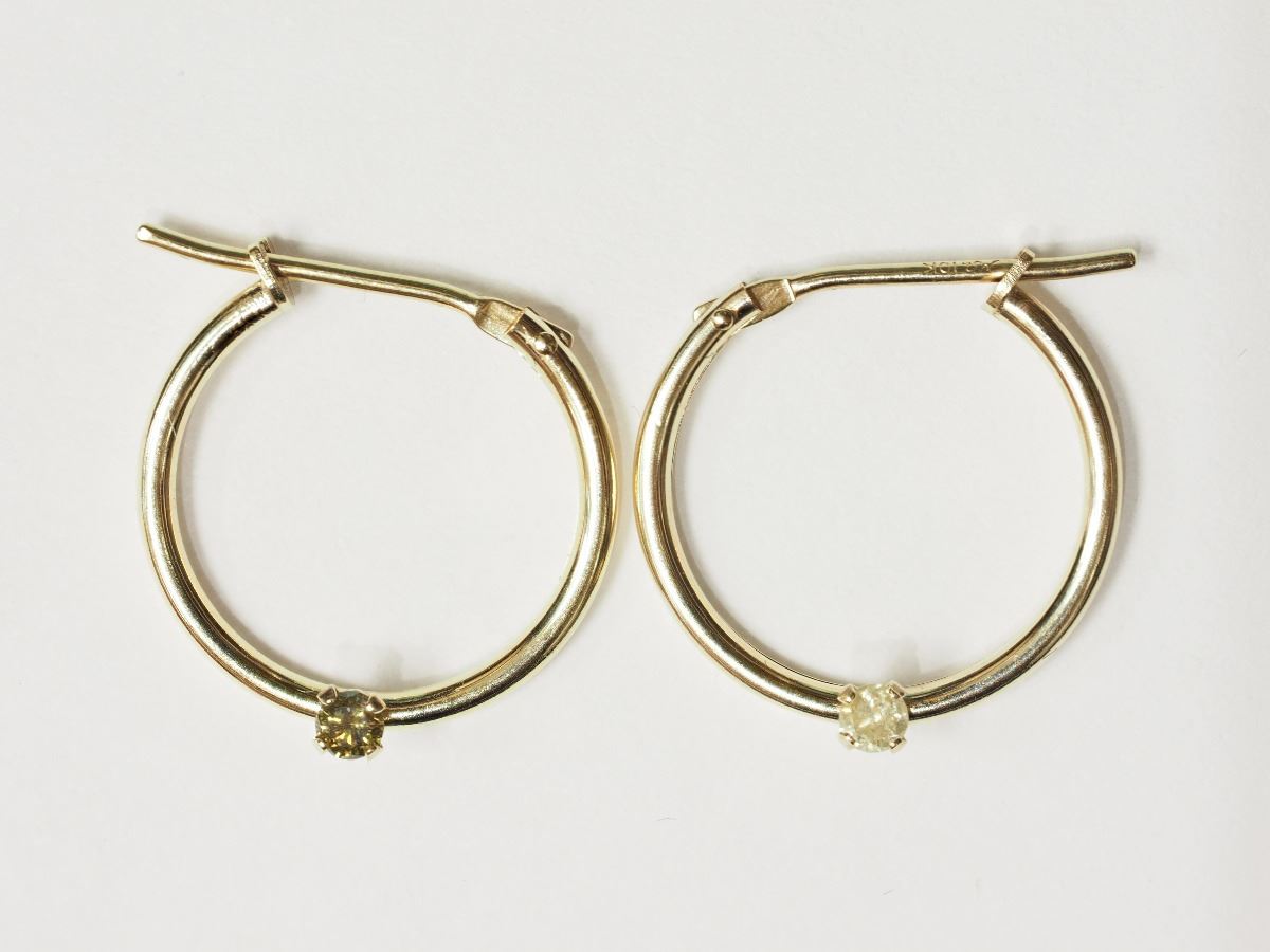 #7-10KT YELLOW GOLD DIAMOND HOOP EARRINGS