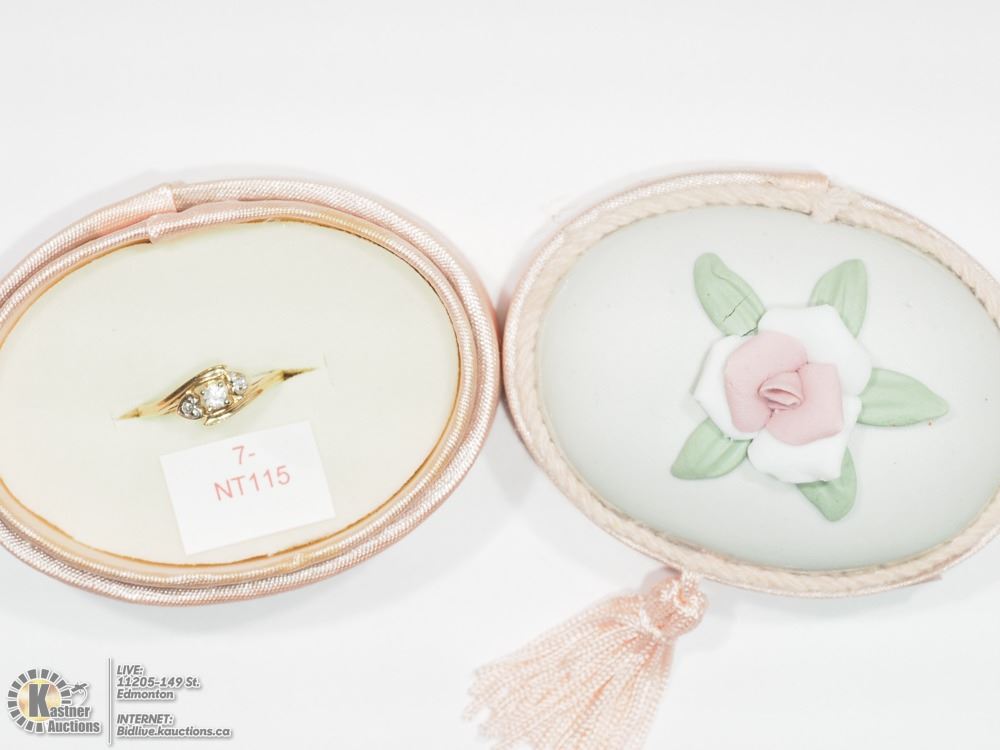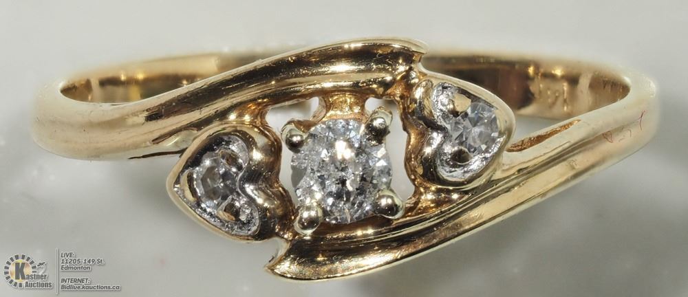 7-NT115- 14K YELLOW GOLD 3 DIAMOND (0.10CT) HEART RING SIZE 5. JEWELLERY.