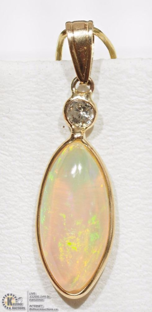 07 - GS11; 14KT YELLOW GOLD OPAL (2.50CT) & DIAMOND PENDANT W/ COA - SUGGESTED REPLACEMENT VALUE $1,200.00