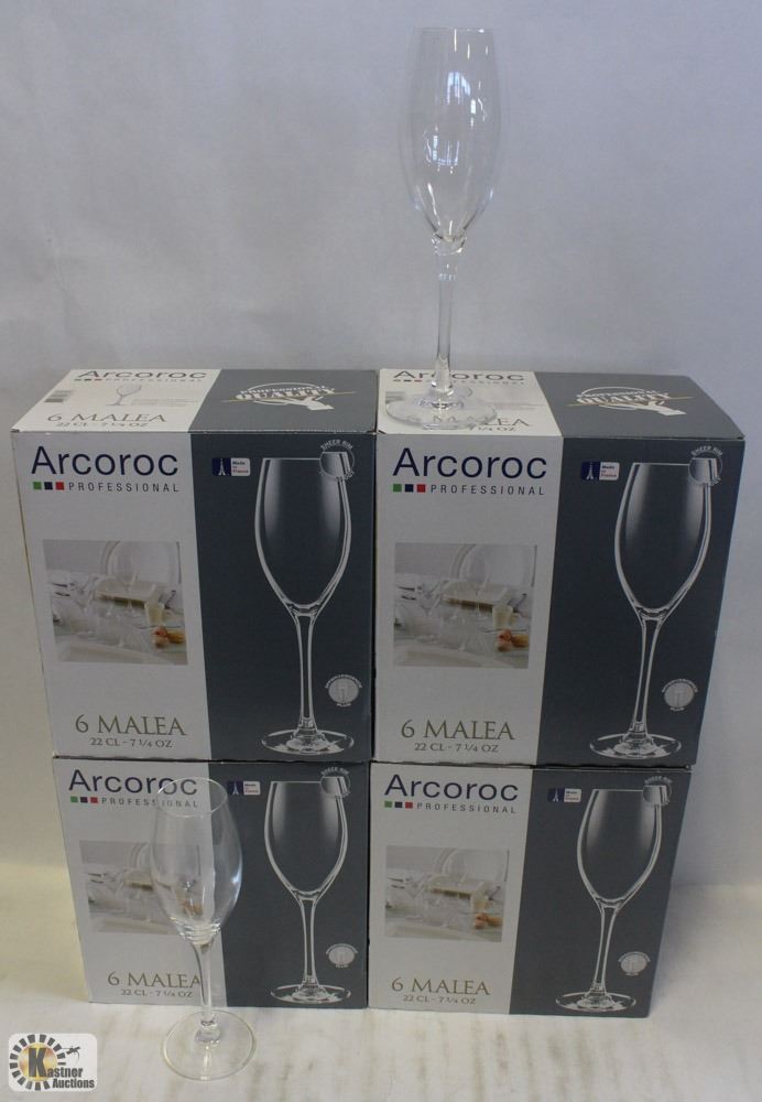 KW167 - NEW 7.25OZ/220ML MALEA FLUTE GLASSES - LOT OF 24 (1 CASE/4 BOXES), ARCOROC G8842