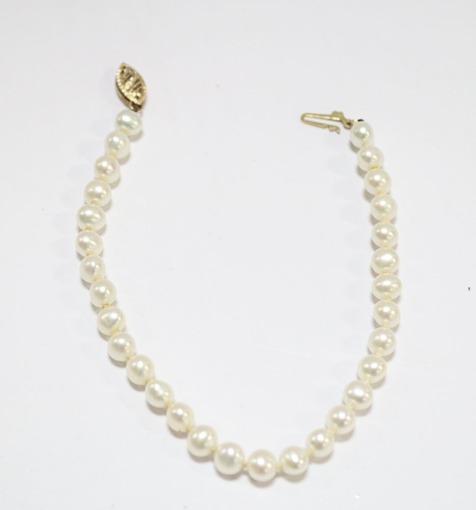 7.5 INCH PEARL BRACELET W 14K GOLD CLASP