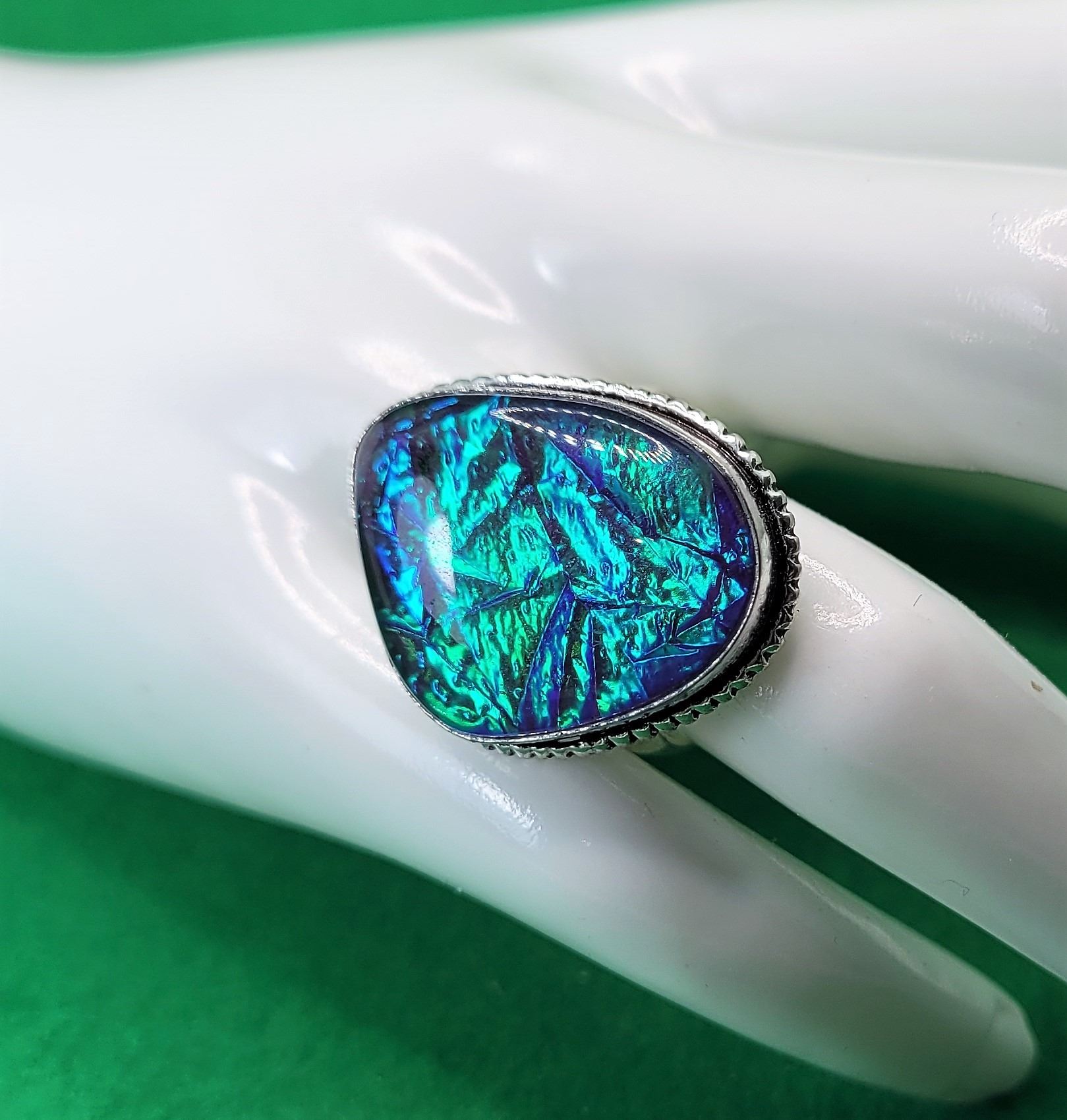 7) AUSTRALIAN TRIPLET FIRE OPAL RING IN SHADES