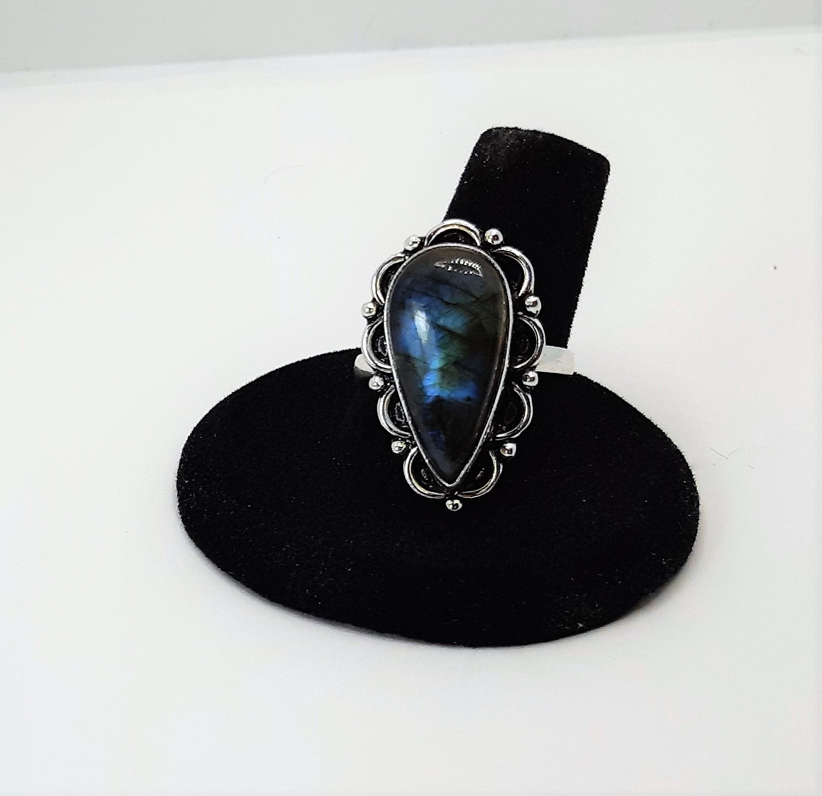 IN 925 STAMPED SILVER WITH A FILAGREE SETTING, SIZE 9. JEWELRY