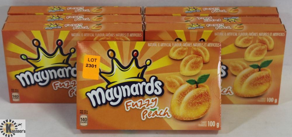 7 BOXES OF 100G MAYNARDS FUZZY PEACH CANDY.