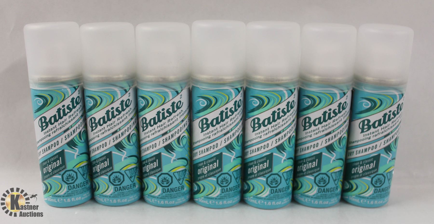 7 CANS OF TRAVEL SIZE BATISTE DRY SHAMPOO.