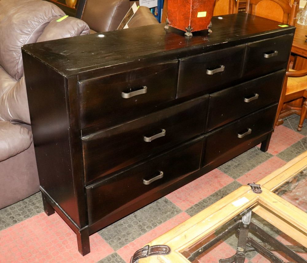 7 DRAWER BLACK DRESSER. FURNITURE 64X17.5X38.5"H