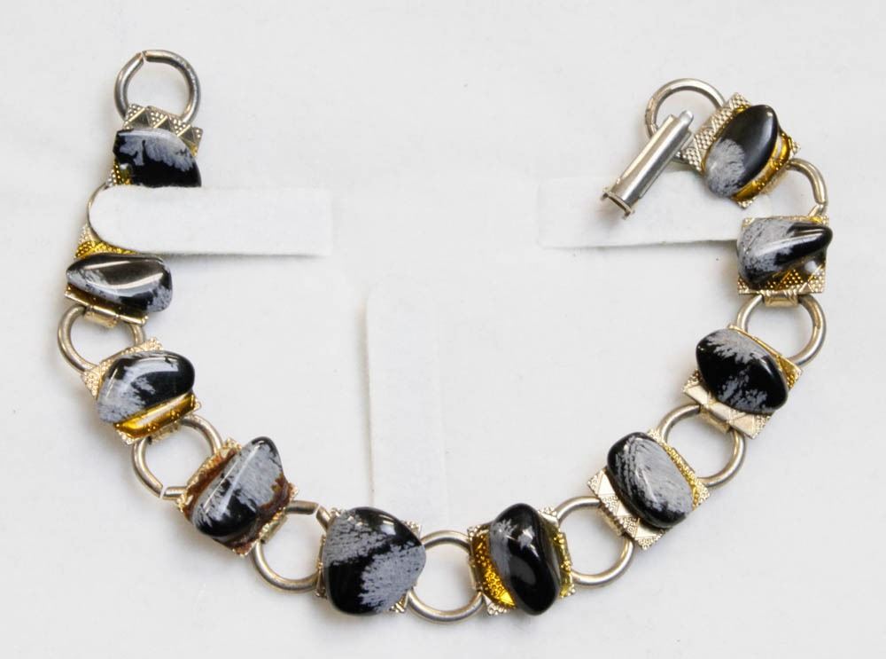 7" GOLD TONE BRACELET WITH SNOWFLAKE OBSIDIAN